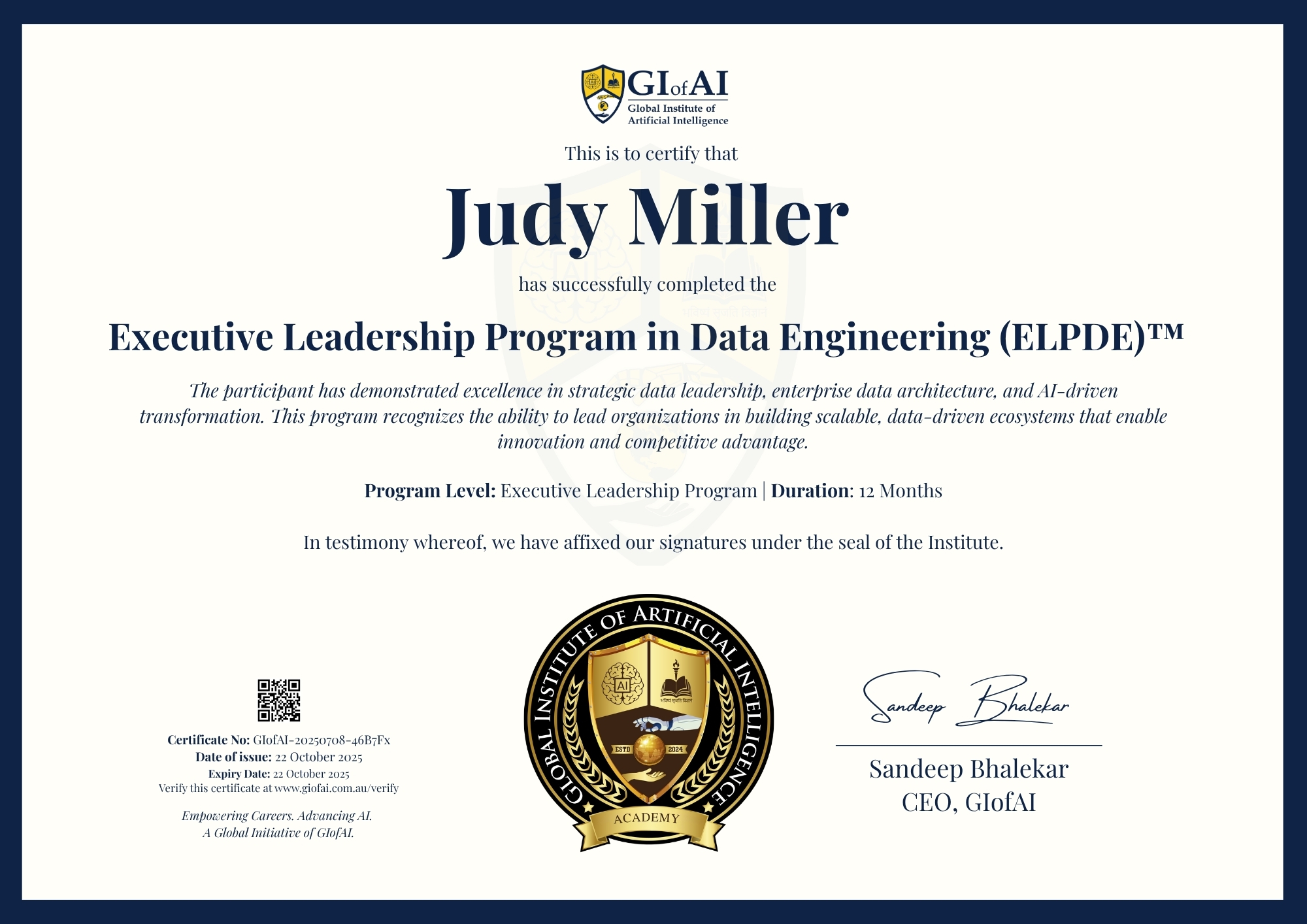 - Topics: Board-style presentations with feedback, Full Data & AI transformation blueprint capstone, Personal brand, CV & 12-month career plan, Executive storytelling & stakeholder influence